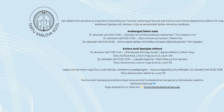 Haridusfestival “Targad ühendused” – Karlova kooli programm